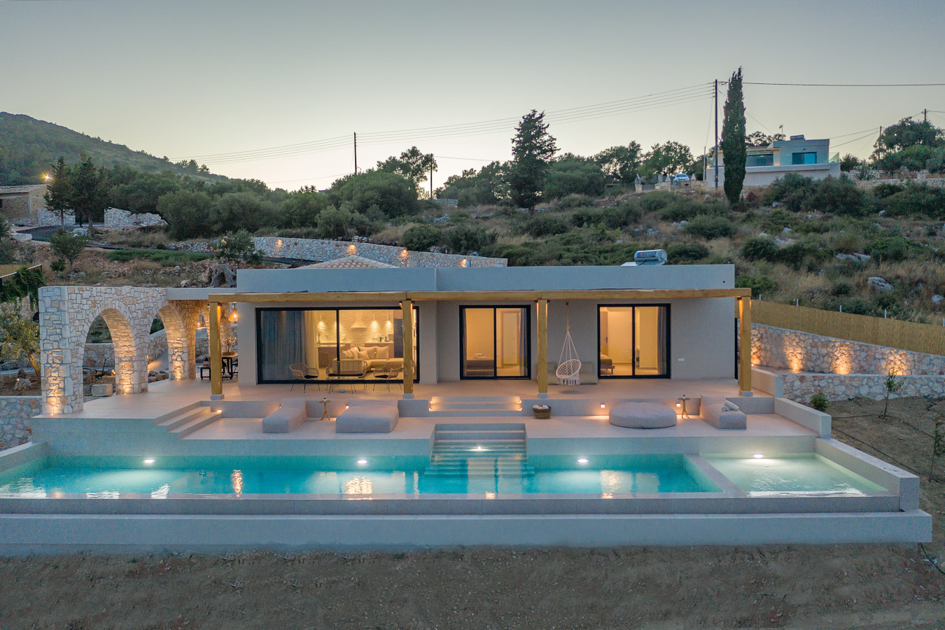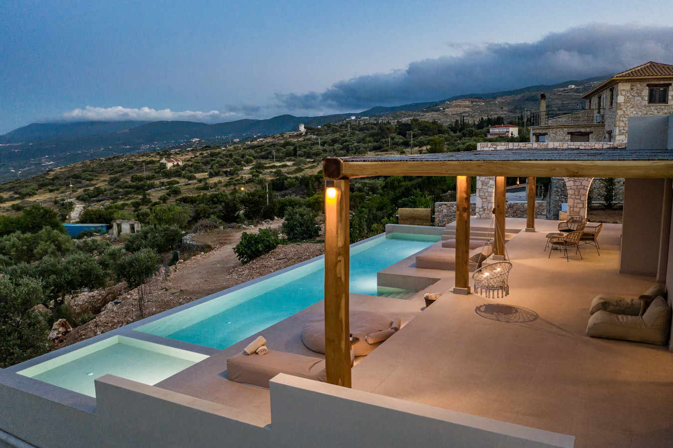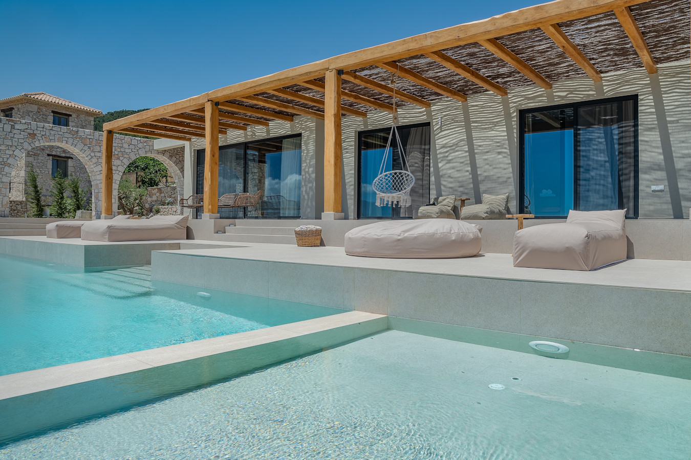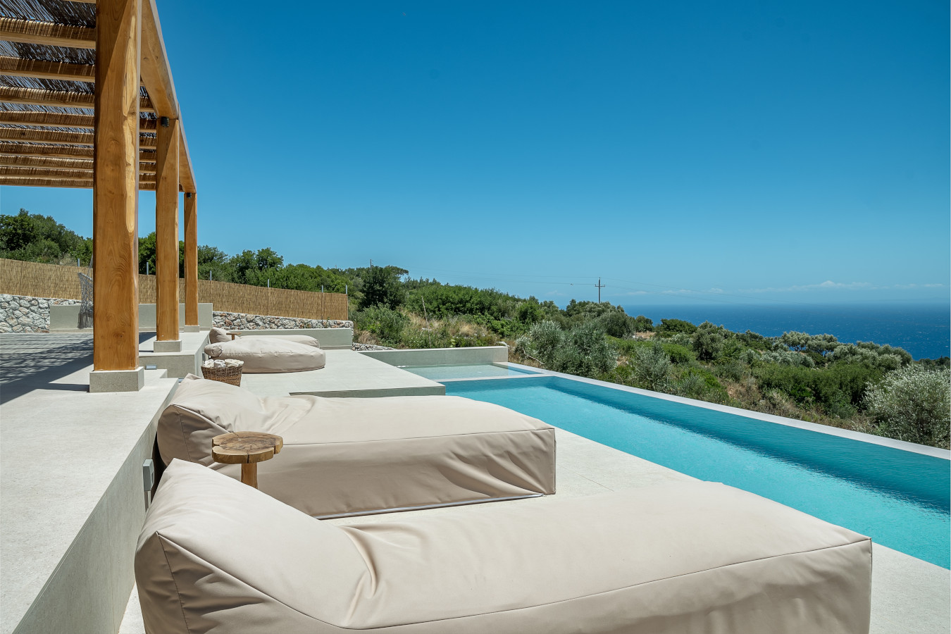 The villa offers a sun terrace. Guests can enjoy the outdoor swimming pool and garden with magnificent sea view and infinity pool 18x4m.