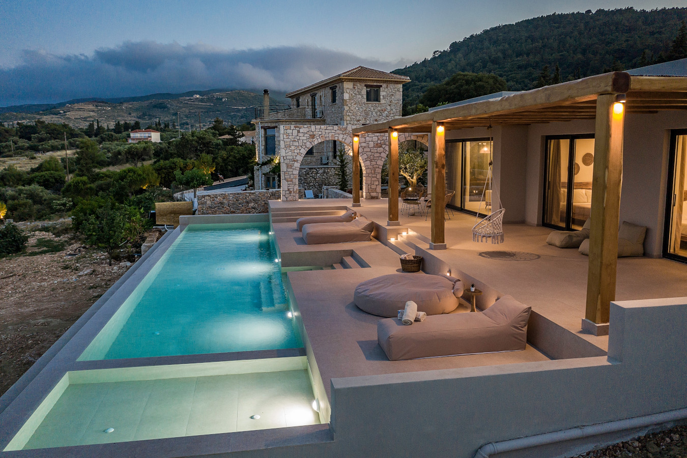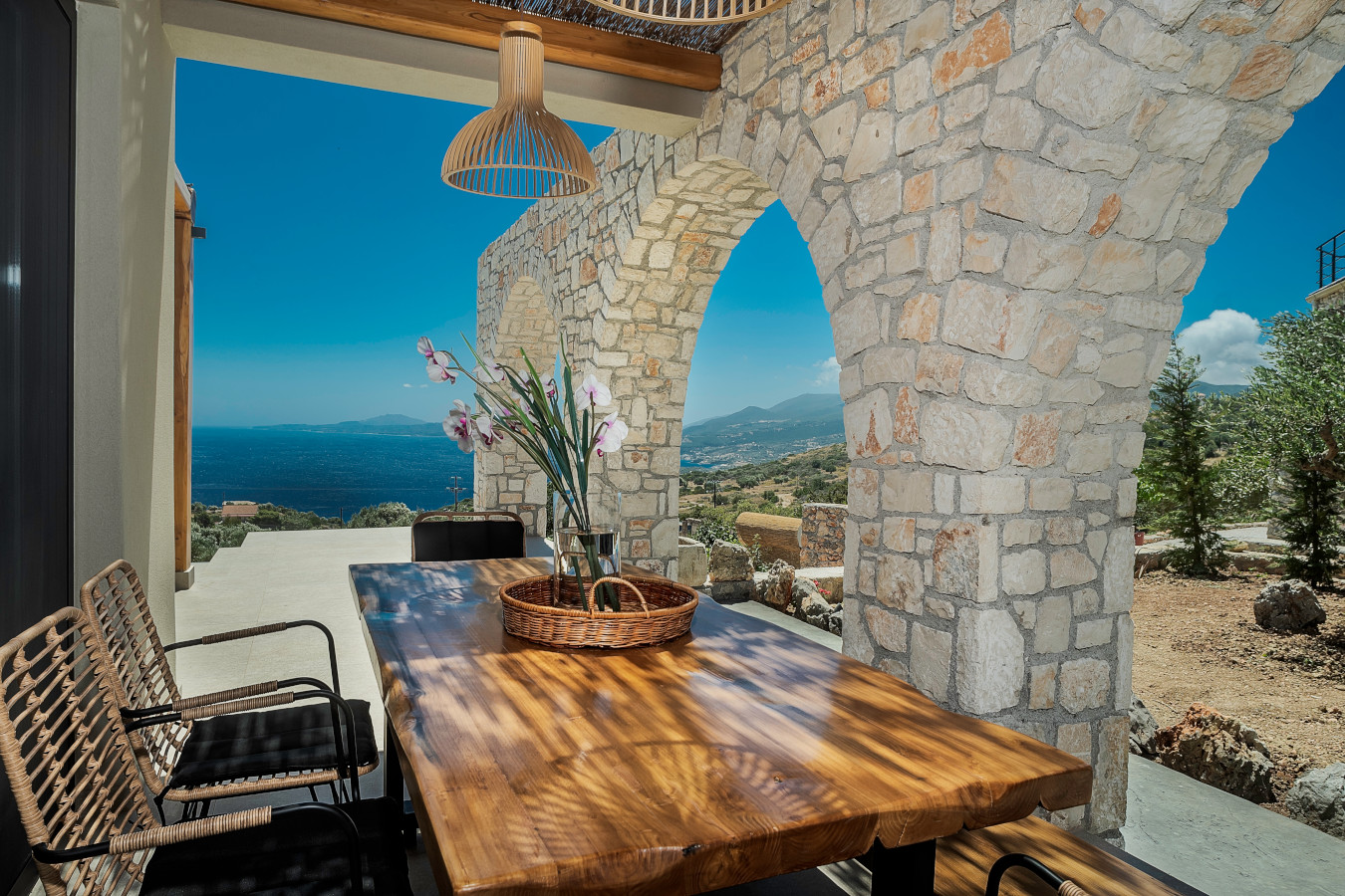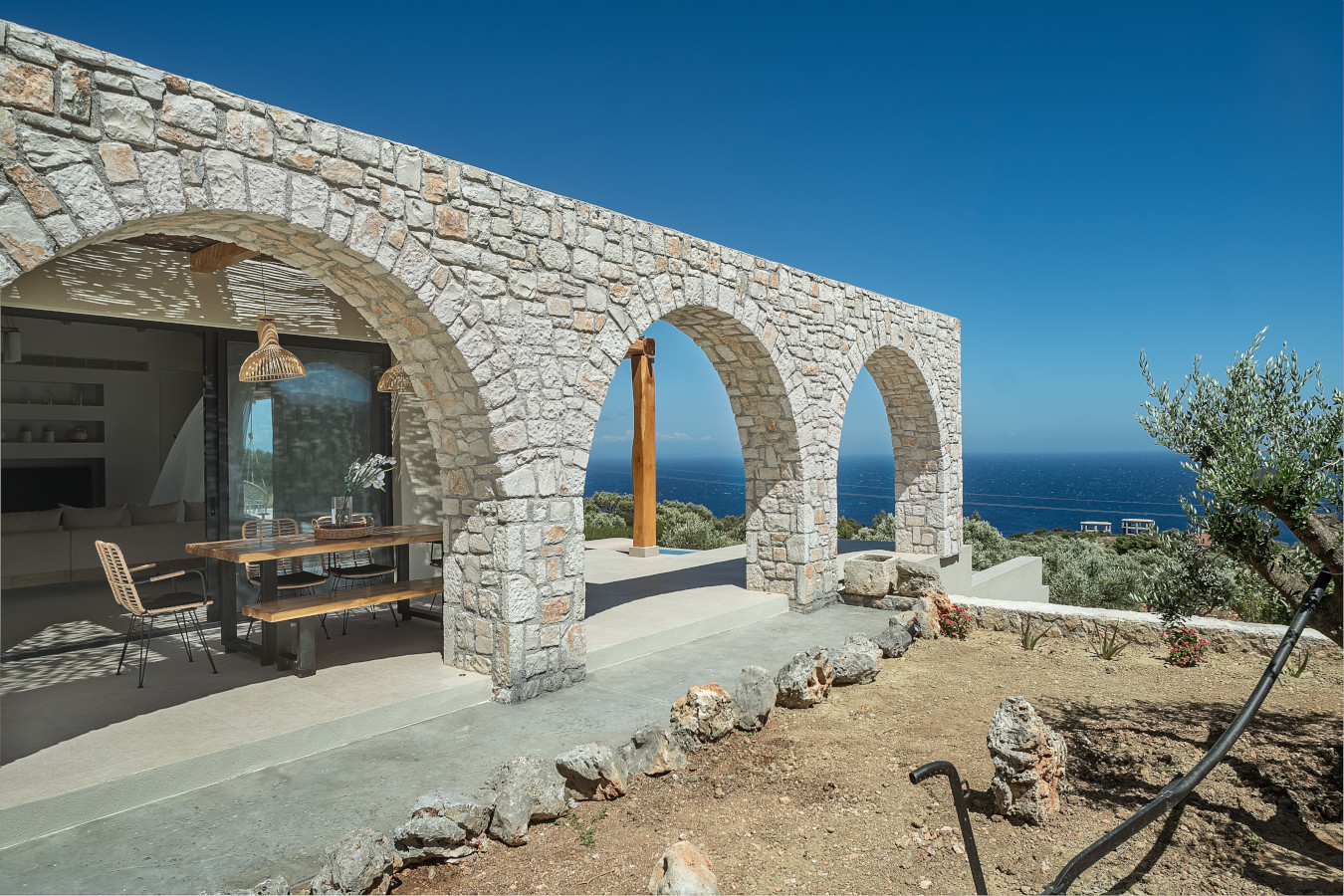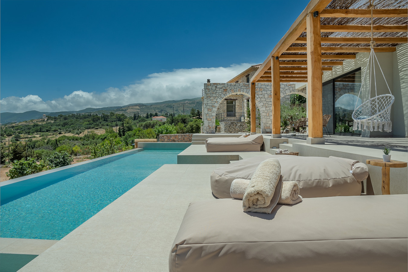 The villa offers a sun terrace. Guests can enjoy the outdoor swimming pool and garden with magnificent sea view and infinity pool 18x4m.