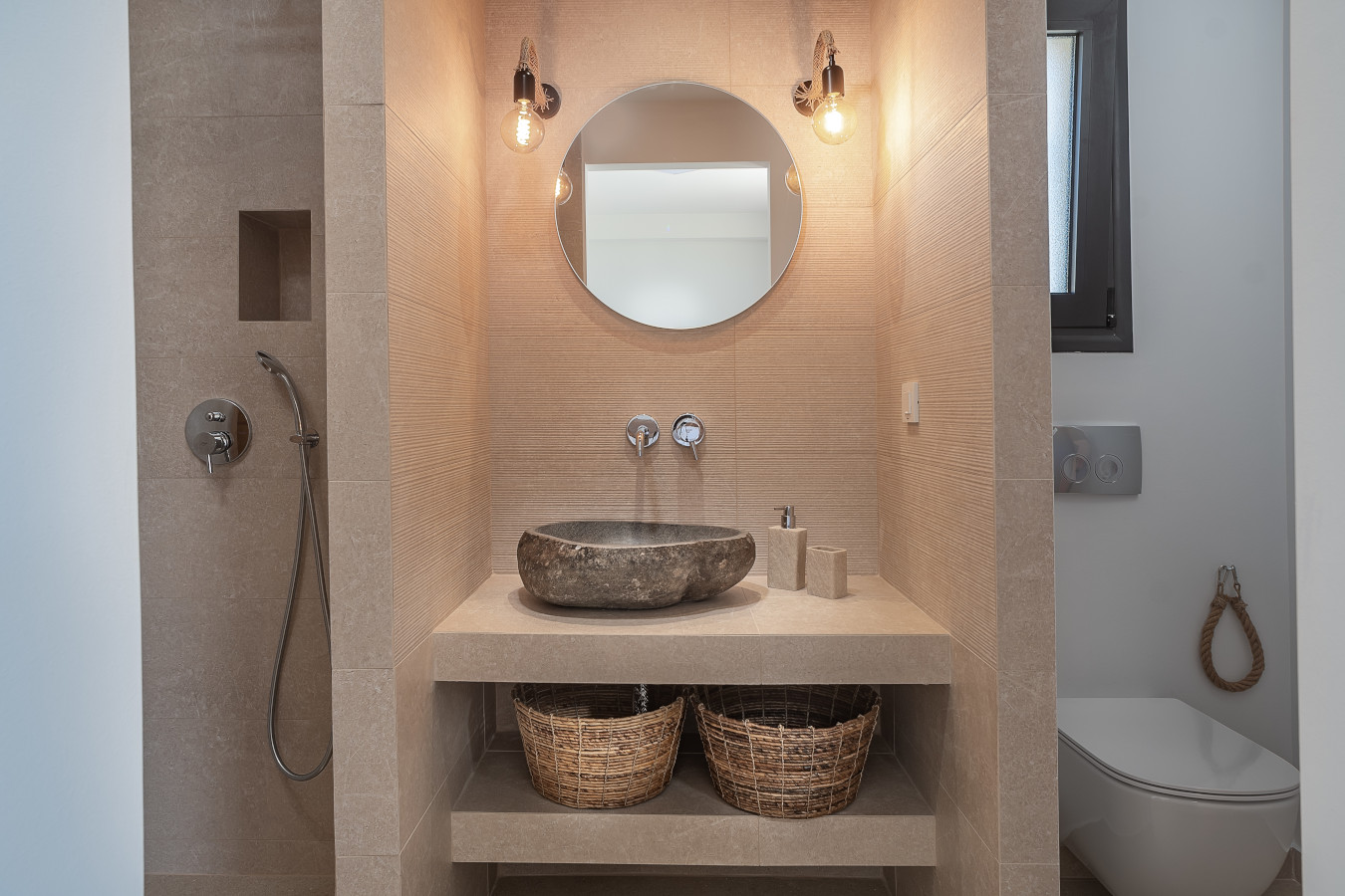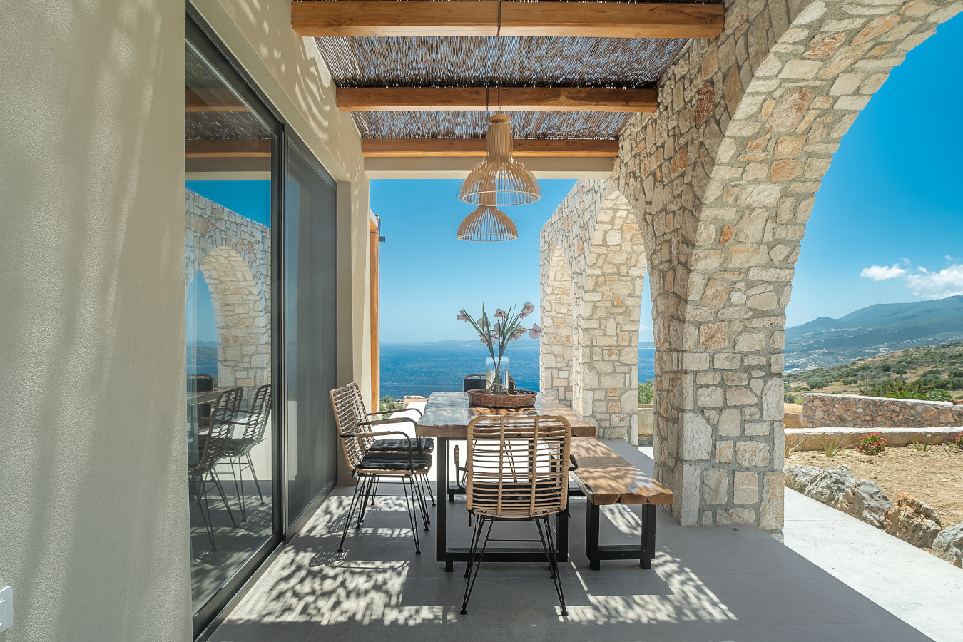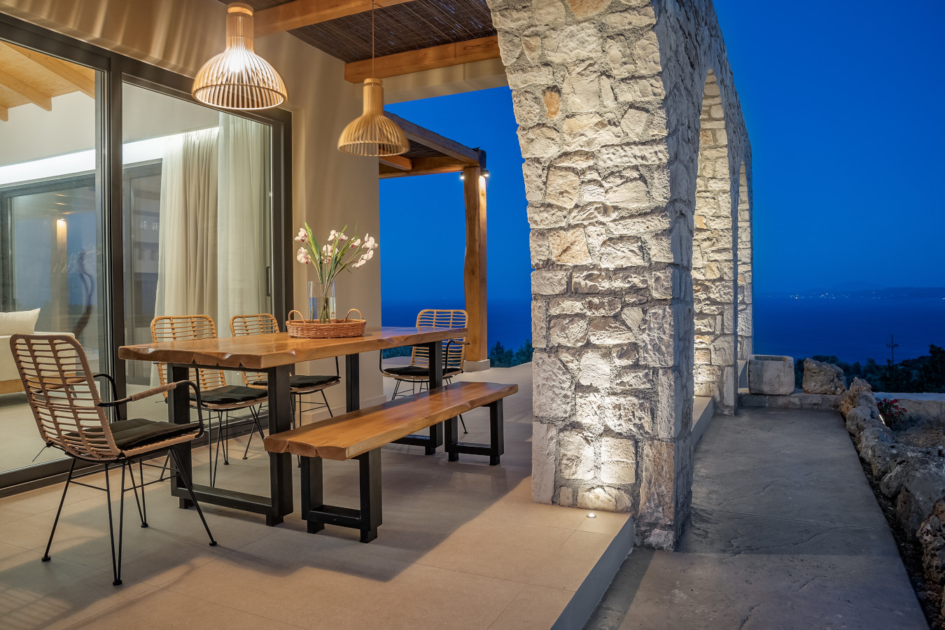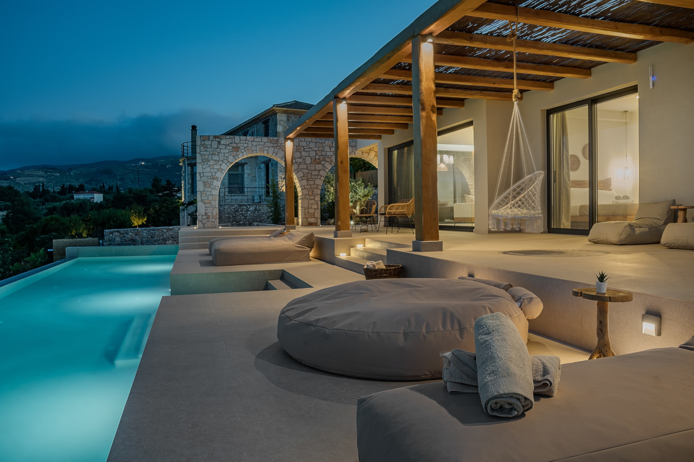 The villa offers a sun terrace. Guests can enjoy the outdoor swimming pool and garden with magnificent sea view and infinity pool 18x4m.