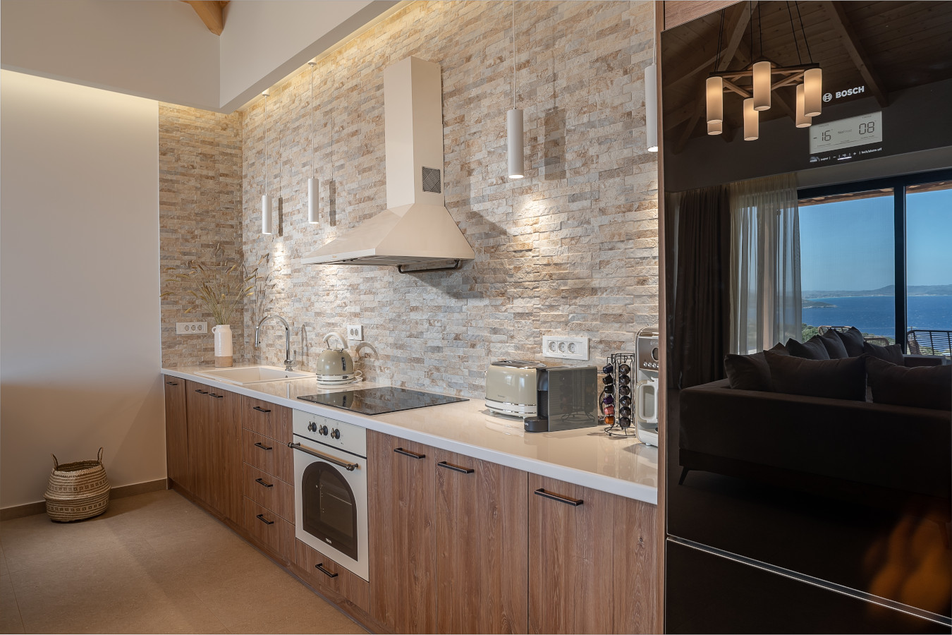 This villa includes 3 bedrooms, a living room and a flat-screen TV, an equipped kitchen with a dining area, and 2 bathrooms with a shower and a washing machine.